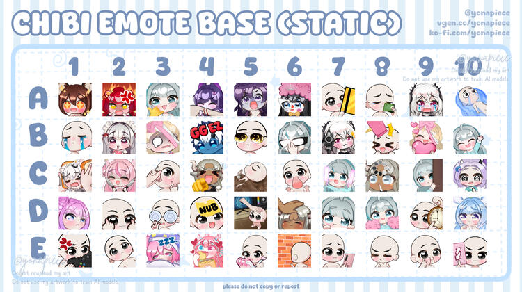 Hello, I’m Yonapiece! I create chibi and emotes assets. You can commission me on VGen or Ko-fi. If you’re not comfortable using a third-party platform, you can message me on Discord!